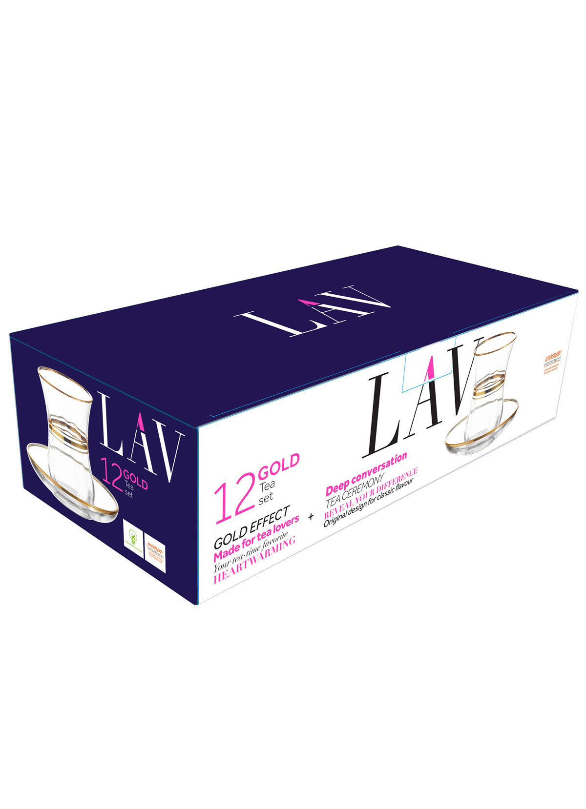 LAV Cay 12-Piece Turkish Tea Glasses Set with Gold Rim, 5 oz